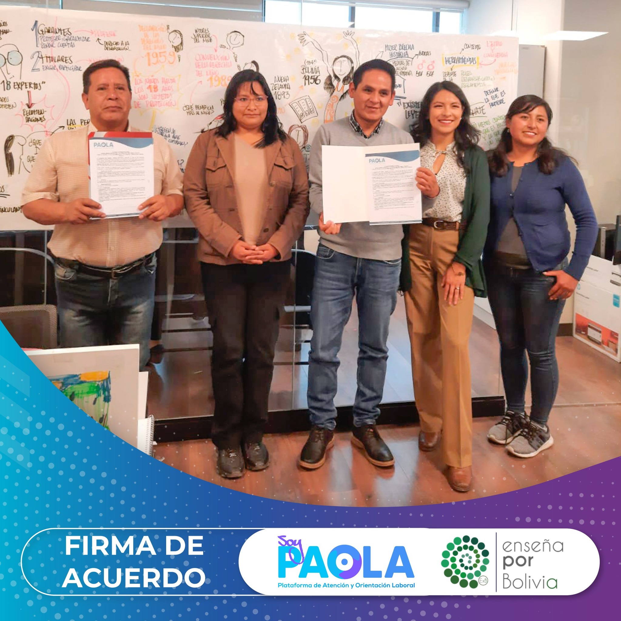 Damos la bienvenida a "Enseña por Bolivia ExB" por unirse a la Plataforma de Atención y Orientación Laboral Soy PAOLA y fortalecer las oportunidades de formación y empleabilidad de jóvenes bolivianos.