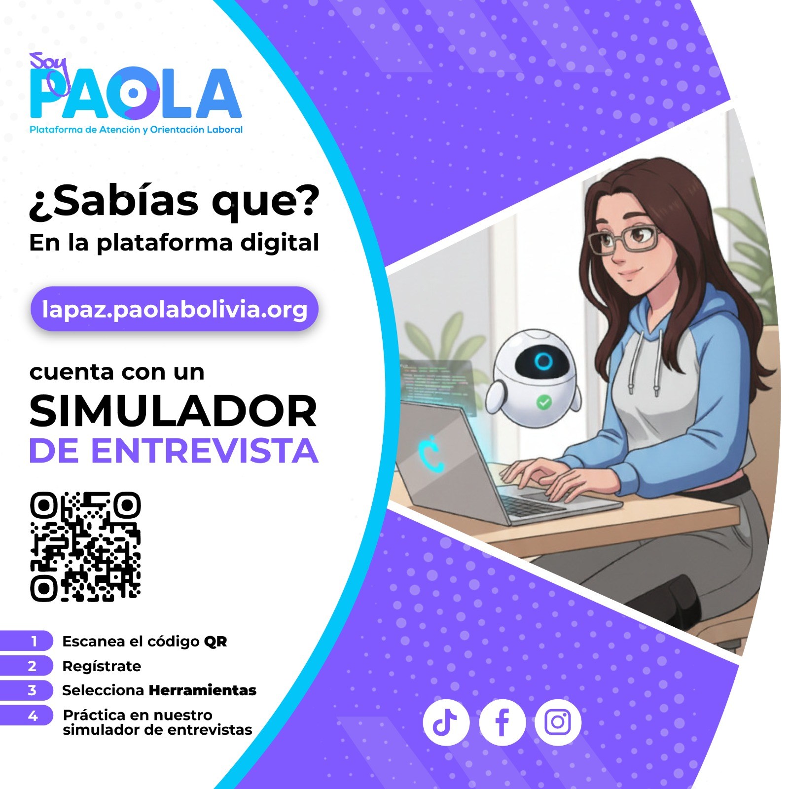 En la plataforma digital Soy PAOLA puedes practicar con nuestro Simulador de Entrevista